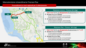 Le variazioni di orario lungo la linea pisana andranno ad interessare anche le linee Firenze-Grosseto e Firenze-Siena, che con la pisana condividono parzialmente il tracciato.