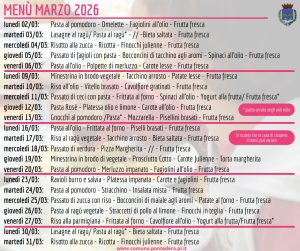 Refezione scolastica, i menu di marzo nelle mense scolastiche