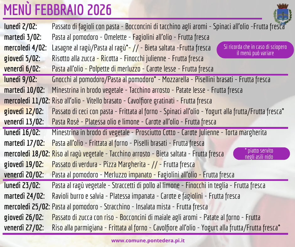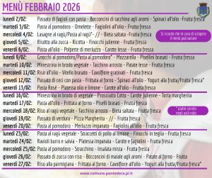 Ecco i menu delle mense scolastiche pontederesi per i primi mesi dell'anno nuovo