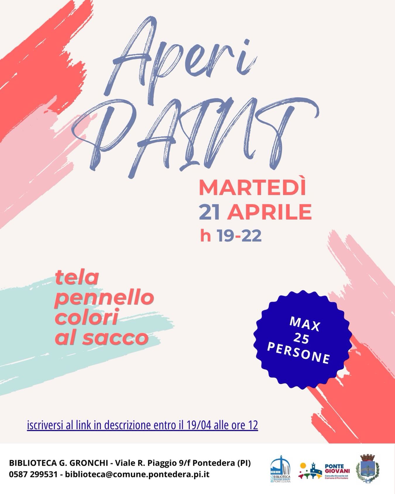 AperiPaint alla biblioteca comunale Gronchi. L'appuntamento è per la serata di martedì 21, dalle 19 alle 22.