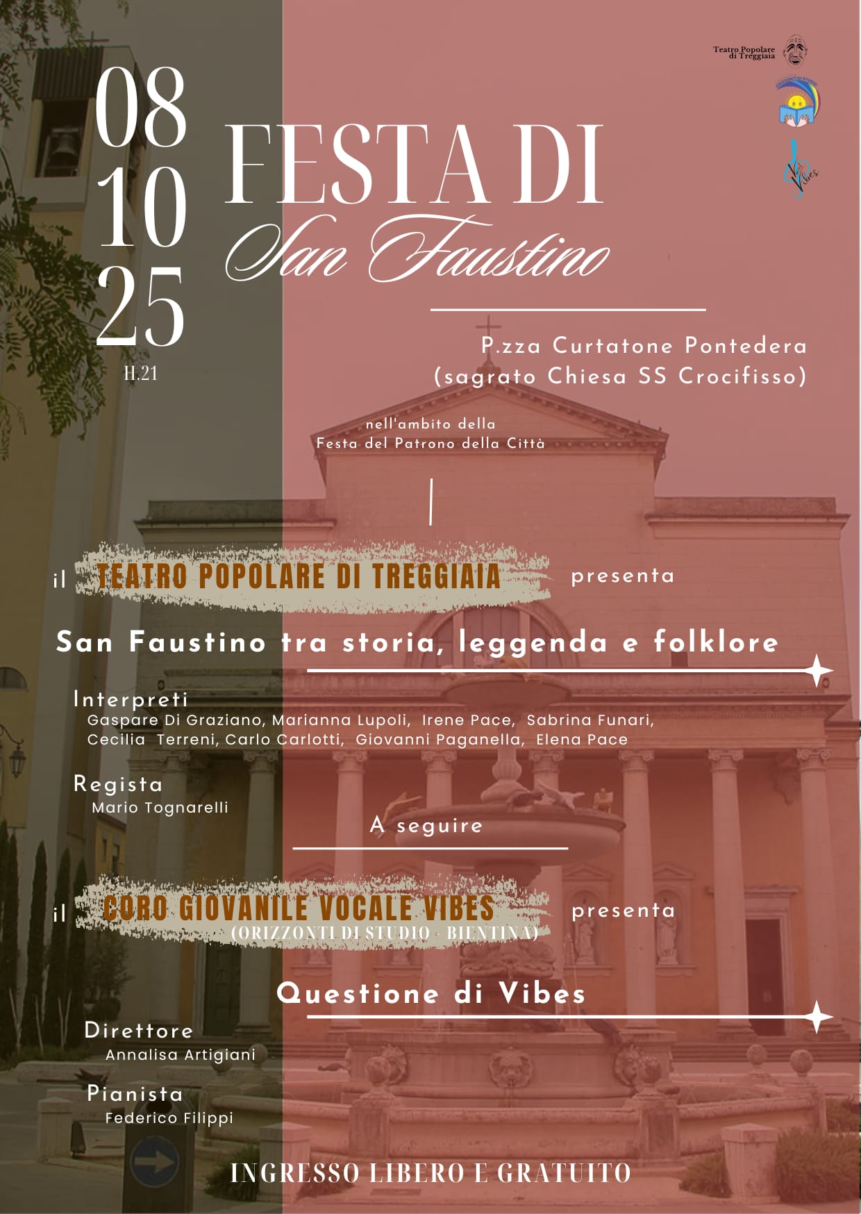 Proprio alla vigilia del 9 ottobre, patrono di Pontedera, il teatro popolare di Treggiaia racconterà la vita e le opere di San Faustino. Lo farà con una rappresentazione in piazza Curtatone dal titolo "Aspettando San Faustino, uomo di Speranza".