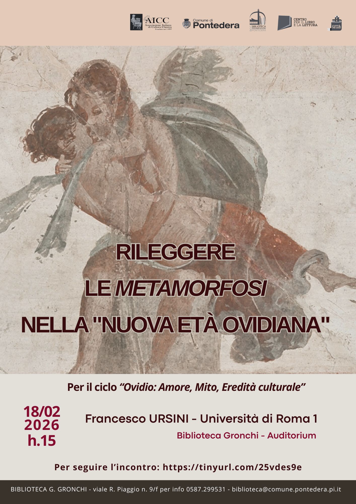 Ingresso libero, a partire dalle 15, per un incontro nel quale il tema sarà Ovidio, con una rilettura delle Metamorfosi nella "Nuova età ovidiana". La conferenza sarà visibile anche online all'indirizzo sulla locandina dell'evento.