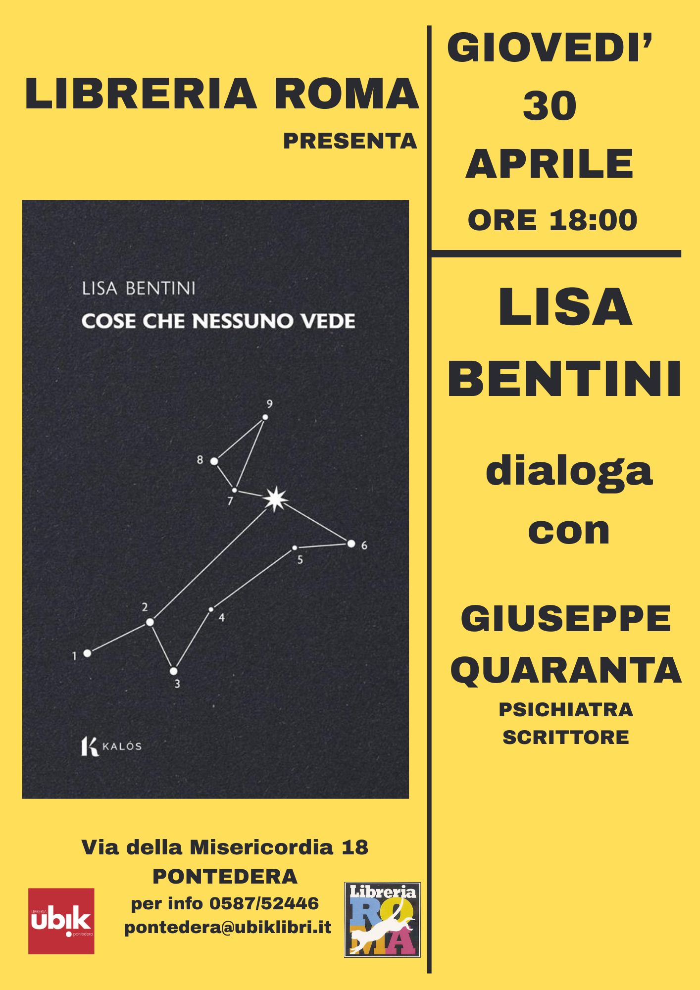 Presentazione del libro "COSE CHE NESSUNO VEDE" di Lisa Bentini giovedì 30 aprile alle ore 18:00 alla libreria Roma Ubik.