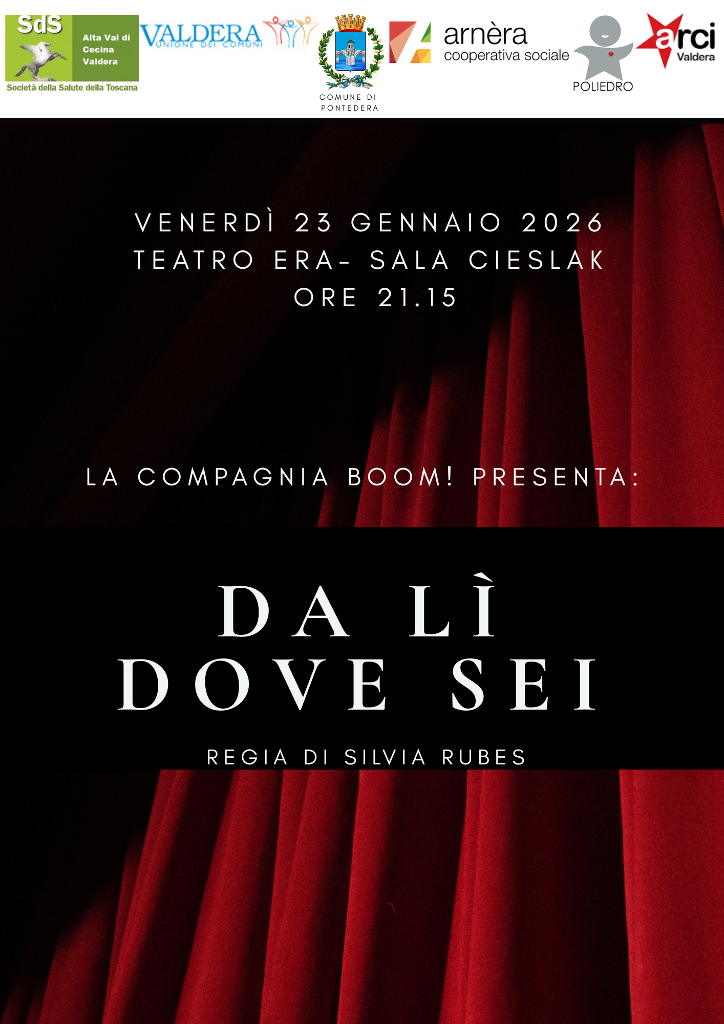 Lo spettacolo si terrà Venerdì 23 Gennaio alle ore 21.15 al Teatro Era, sala Cieslak. Dato il numero limitato di posti disponibili è gradita la prenotazione.