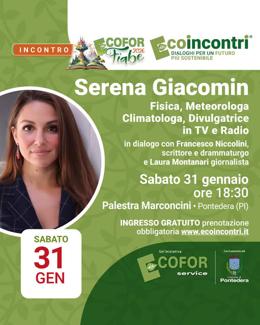 Sabato 31 gennaio ore 18:30 nuovo Ecoincontro con Serena Giacomin, fisica, meteorologa, climatologa e divulgatrice in TV e radio.