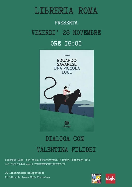 Eduardo Savarese presenta "Una piccola luce", in dialogo con Valentina Filidei. Lo fa in occasione dei 15 anni della libreria Roma-Ubik di Pontedera. Un autore di alto livello per quella che sarà anche una giornata di festa.