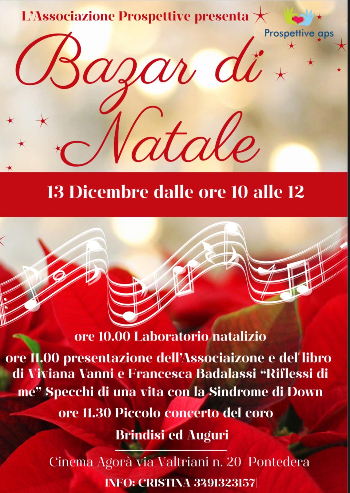 Una mattinata con l'associazione Prospettive e il suo Bazar di Natale. L'appuntamento è al cinema Agorà di via Valtriani alle ore 10. Si parte con un laboratorio natalizio per poi, alle ore 11, assistere alla presentazione del libro di Viviana Vanni e Francesca Badalassi "Riflessi di me. Specchi di una vita con la sindrome di Down". Chiusura alle 11,30 con un piccolo concerto del coro, il tradizionale brindisi e gli auguri di Natale.