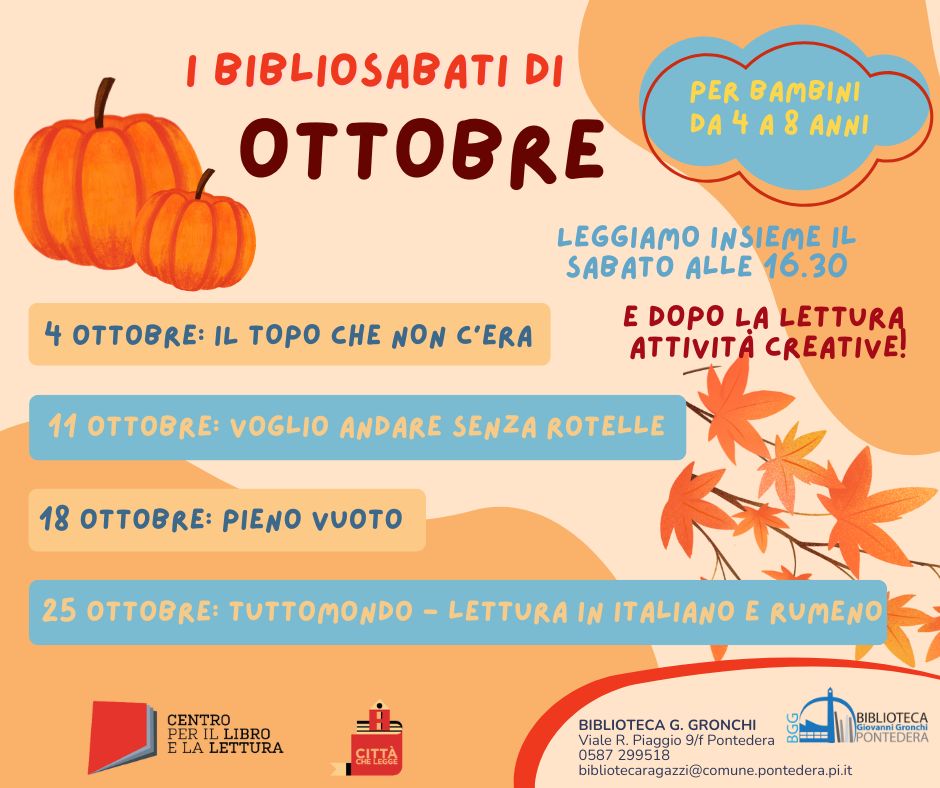 Continua il calendario dei tradizionali Bibliosabati di ottobre alla Gronchi di viale Rinaldo Piaggio.