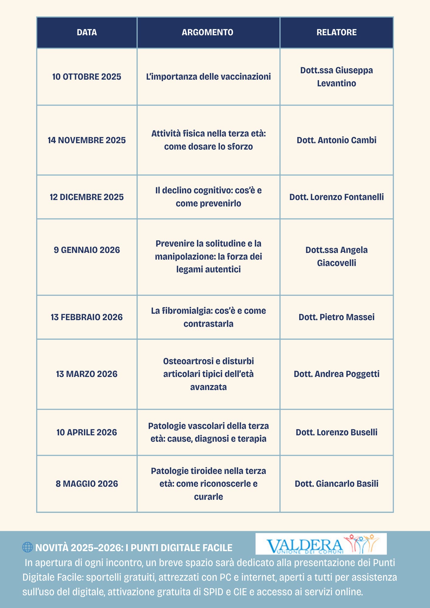 "Il declino cognitivo, cosa è e come prevenirlo" è il tema dell'incontro di venerdì 12 dicembre dei "Venerdì della Salute", iniziativa dei Lions Pontedera in collaborazione con Utel, Comune di Pontedera e Poliambulatorio San Giuseppe.